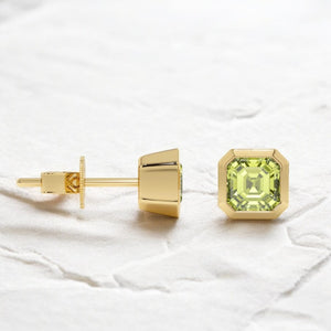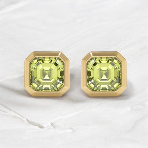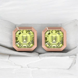 Cushion Cut Peridot Solitaire Bezel Studs
